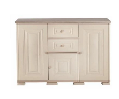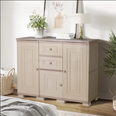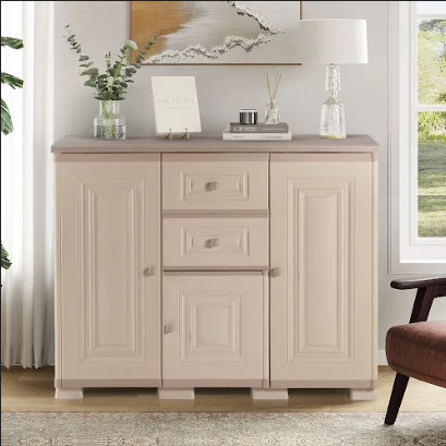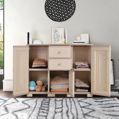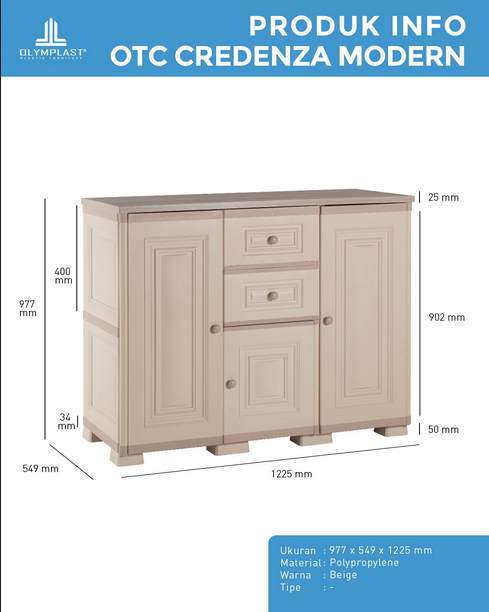 – Lemari credenza sebagai tempat penyimpanan serbaguna dengan desain simple minimalis