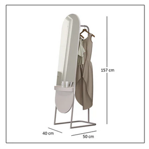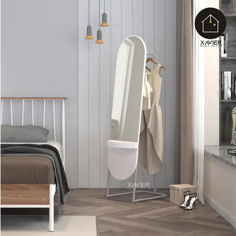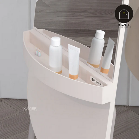 JADE dilengkapi dengan rak kecil yang dapat digunakan untuk menyimpan skincare, aksesoris, atau benda kecil lainnya. Selain itu, di bagian belakang cermin terdapat rangka besi yang dapat difungsikan menjadi gantungan pakaian kalian