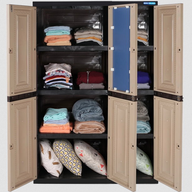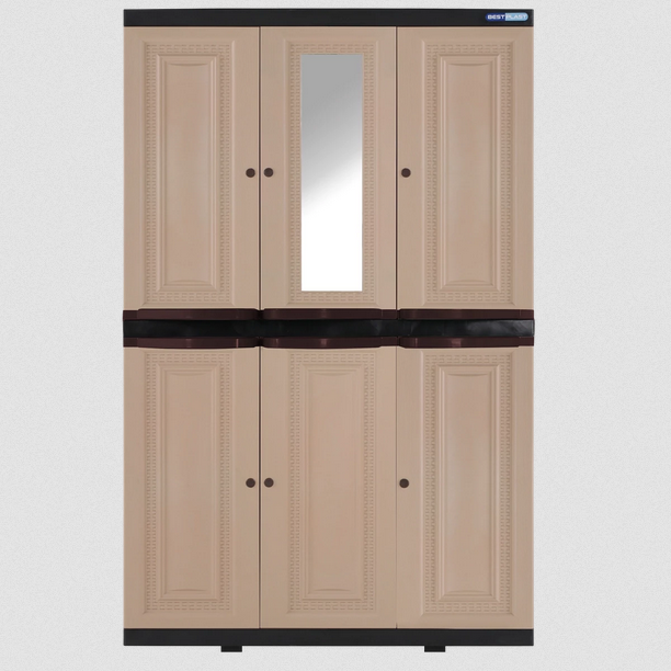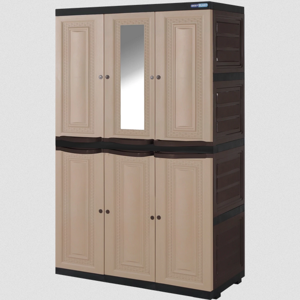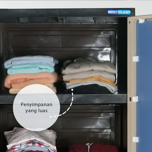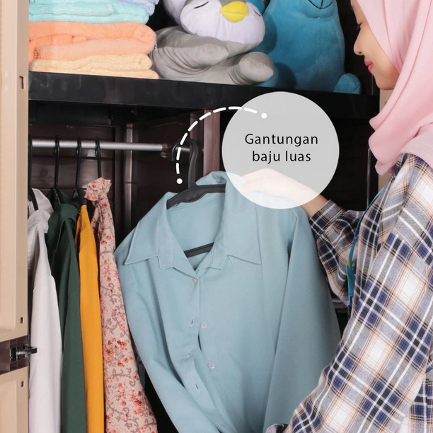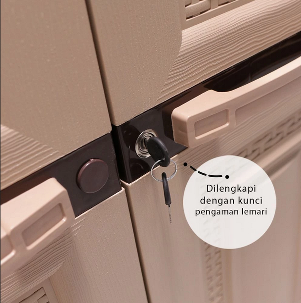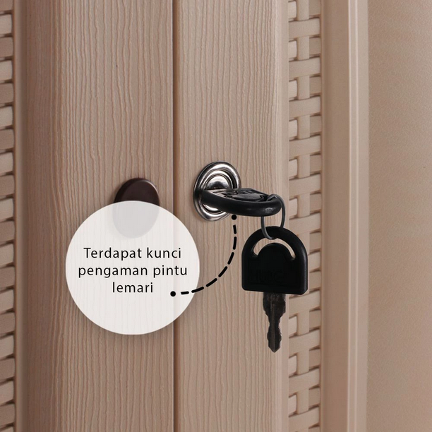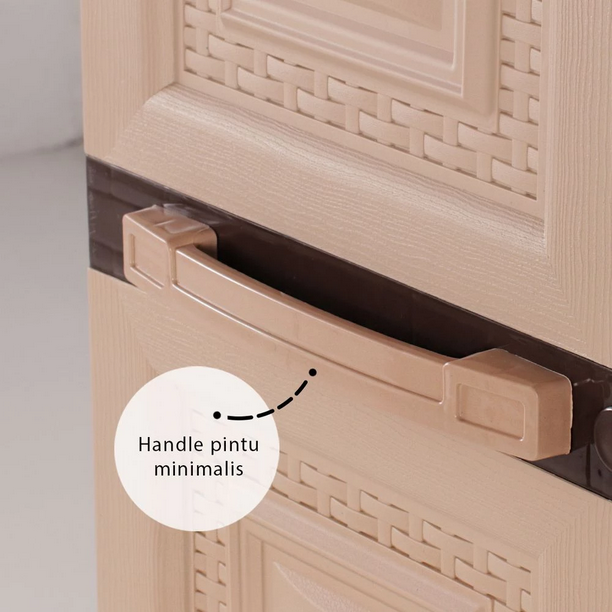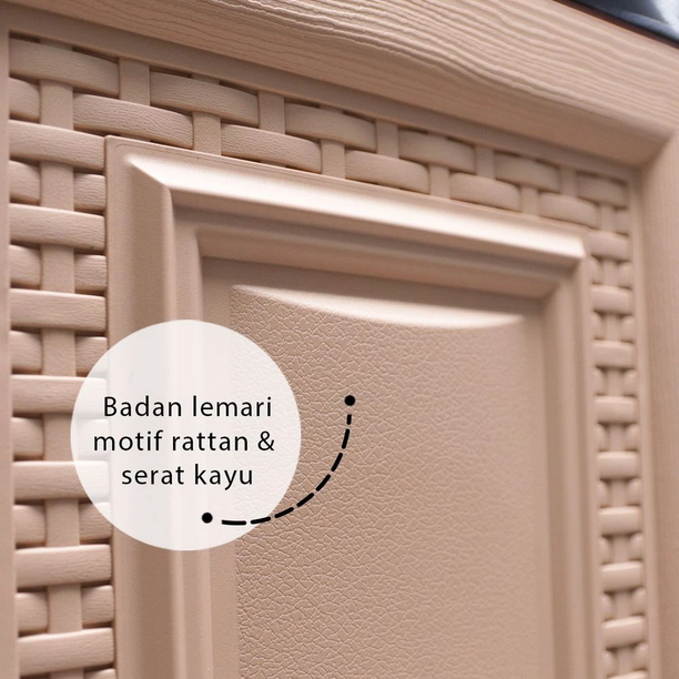 Lemari pakaian 3 pintu motif rattan dengan rak penyimpanan luas. Terdapat kuncian pengaman, serta motif tekstur serat kayu. Memiliki konstruksi yang kokoh, dan komponen yang tidak mudah lepas.