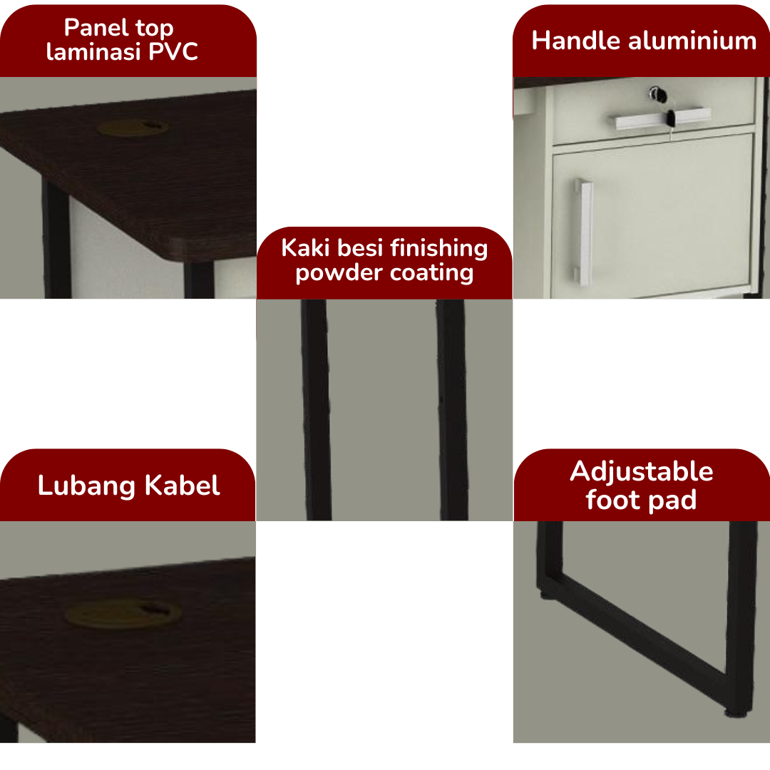 VINO MTB 121, memiliki desainelegan dengan fitur-fitur yangfungsional. Meja ini didesain untukmemberikan kenyamanan, stabilitas dan kepraktisan dalam bekerja.