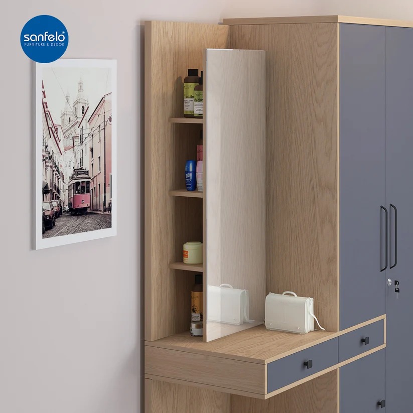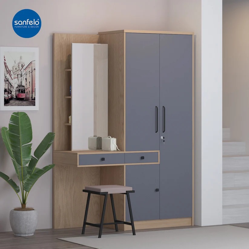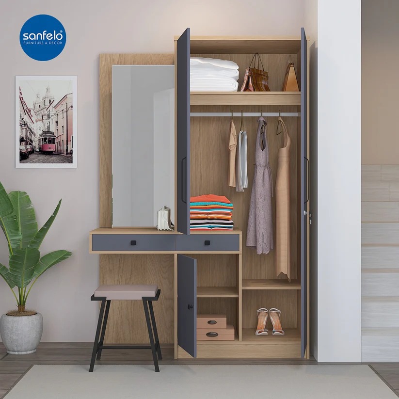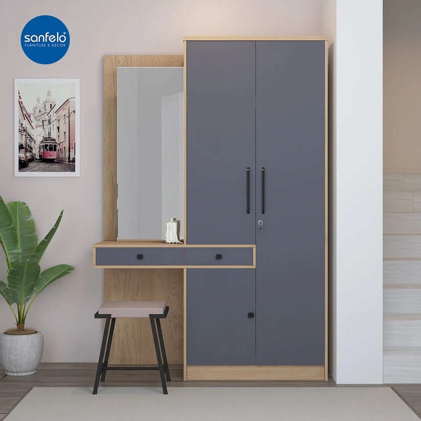 Bahan particleboard 15mm finishing pvc sheet Light Wood Grain kombinasi Slate Grey